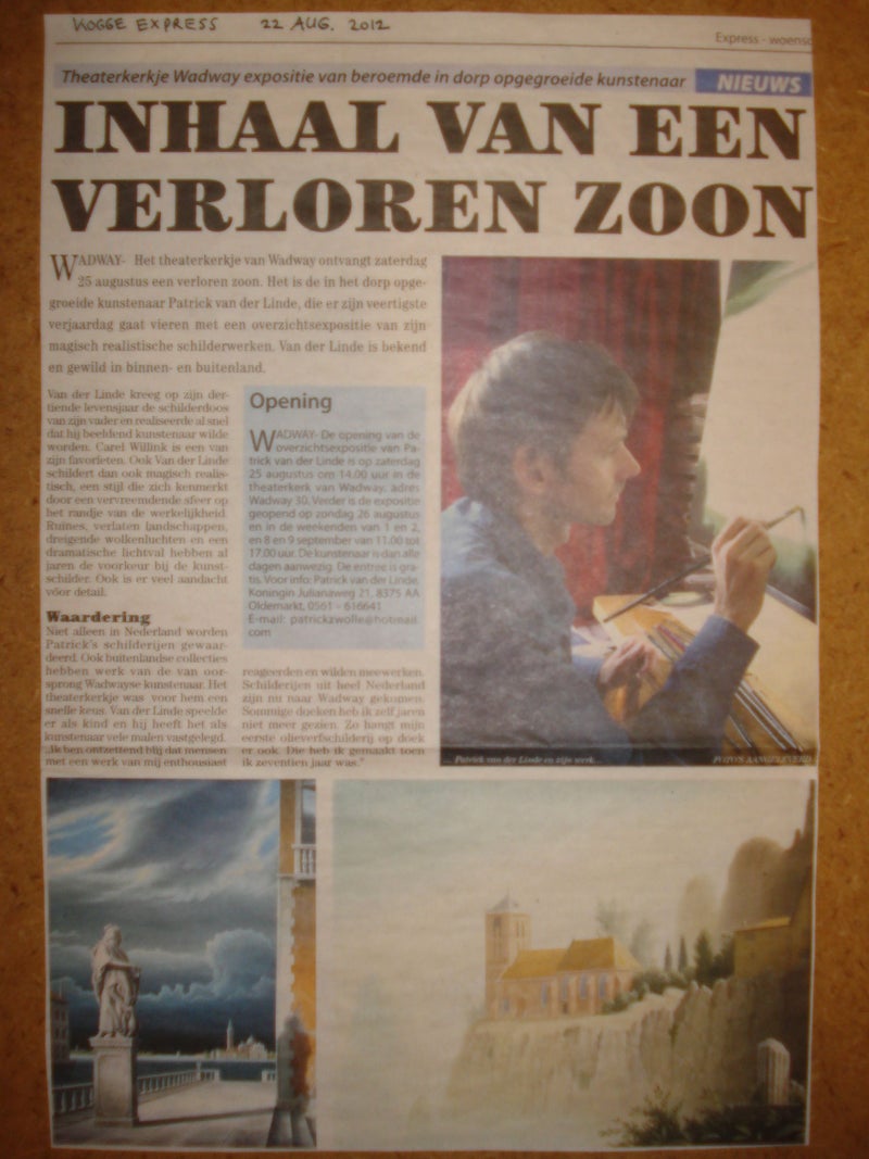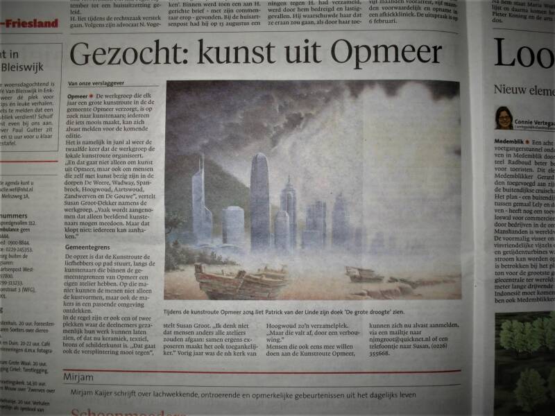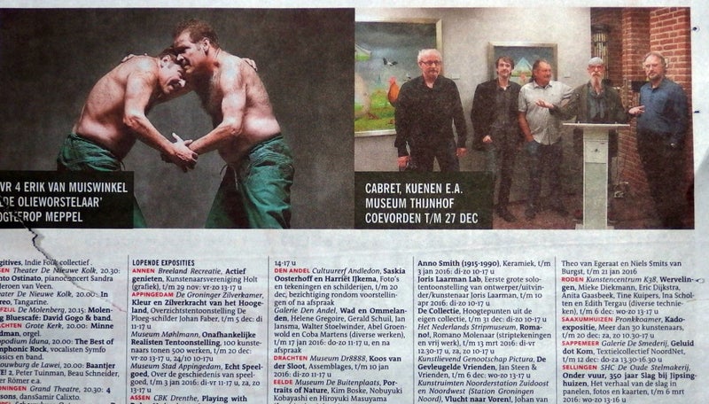 Boven: Dagblad van het Noorden n.a.v. de expositie in Museum Thijnhof met Surcol in 2015.
