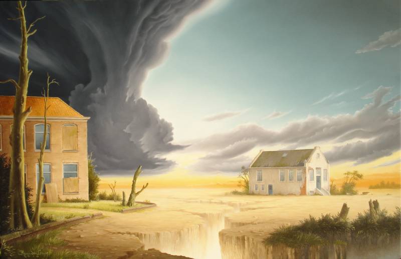 Boven: De Breuk, olieverf op paneel, 25,5 x 39 cm. 2016 (beschikbaar)